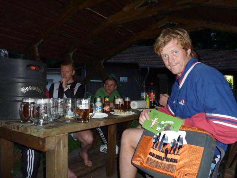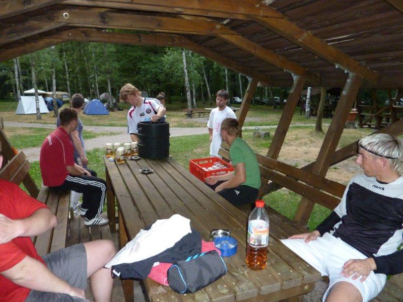 Nach der Ankunft und dem Aufbauen des Zeltlagers lag die erste Trainingeinheit auf der Tagesordnung. Hierfür wurde der Sportplatz in Dornburg genutzt. Trotz einiger Wetterumsprünge konnte Freitag Abend gegrillt werden. Das anschließende gemütliche Beisammensein und die Übernachtung im Zelt sorgte für ein weiteres Zusammenrücken innerhalb der Mannschaft und stärkte den Teamgeist.