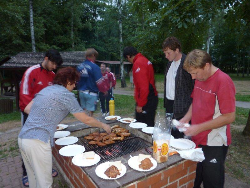 Der Samstag begann mit einem beherzten Frühstück und die zweite Trainingseinheit konnte beginnen. Leichte Aufwärmübungen und größtenteils Einheiten am Ball, darunter auch Torschuss, lockerten die schweren Beine und führten zu einer aufgemunterten Stimmung. (Siehe Bilder) Die Stärkung zur Mittagspause in der Dornburger Gaststätte gab das nötige Durchhaltevermögen im Freundschaftsspiel gegen Steutz/Leps. Dies endete mit einem verdienten 2:2. Nach kurzem Besuch zum jährlichen Dorffest in Prödel wurde an dessen See erneut die Grillkohle angezündet. Geschehnisse beim gemütliches Beisammensein am Abend und in der Nacht überlassen wir der Phantasie des Lesers.