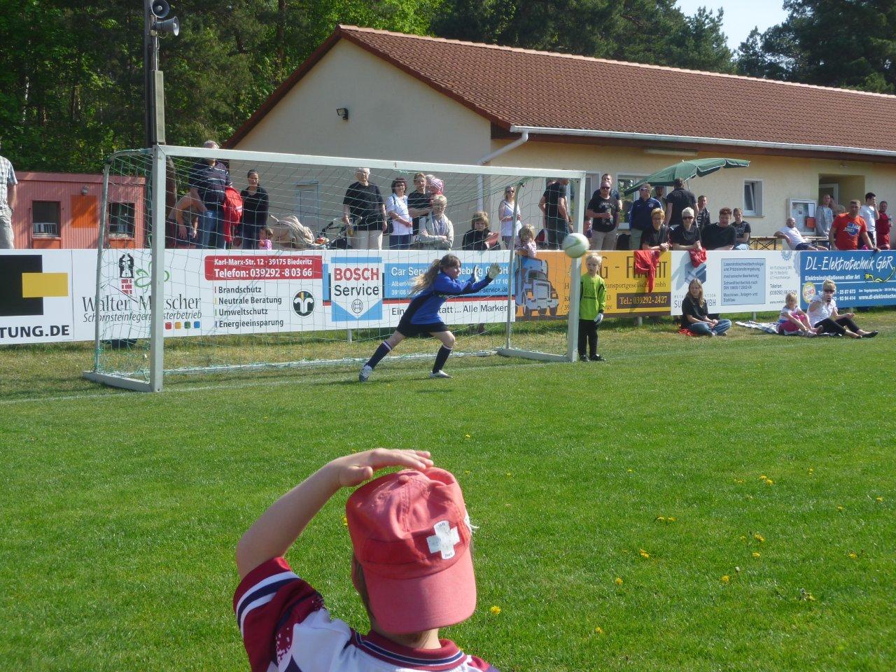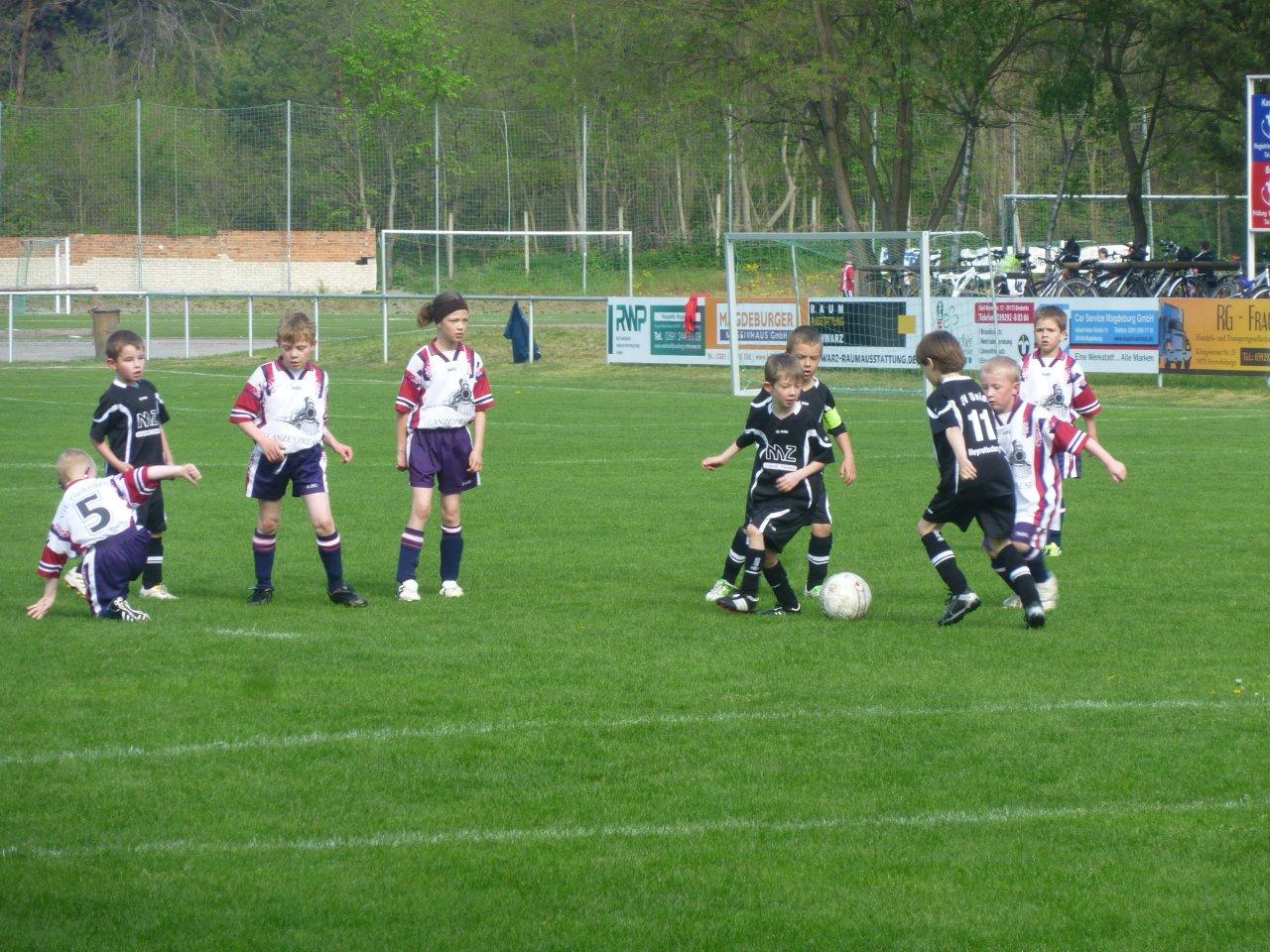 Am 01. Mai reiste die G/F-Jugend Mannschaft des VfL Gehrden zum traditionellen „Maifest des SV Union Heyrothsberge“ nach Heyrothsberge. Dort bestritten die Jüngsten des VfL ihr erst zweites Freiluftspiel. Entsprechend aufgeregt waren alle 13 mitgereisten Junior-Fußballer. Das Freundschaftsspiel gegen die G-Jugend des SV Union Heyrothsberge war das Eröffnungsspiel des Turniers der Herren. Leider war der Trainer der Bambinis, Herr Laube, kurzfristig erkrankt, sodass die mitgereisten Eltern die Betreuung übernahmen. Gespielt wurde, wie in der G-Jugend üblich, 2 mal 20 Minuten mit einem Torwart und sieben Feldspielern.