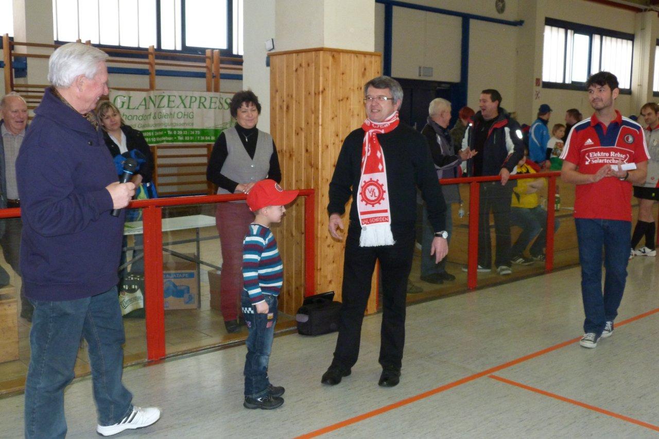 Da die Mannschaft des Ummendorfer SV kurzfristig abgesagt hatte, wurde der Spielplan umgestellt. Die Mannschaften spielten 15 Minuten je Partie im Modus jeder gegen jeden um den Turniersieg. Nachdem das Turnier durch den Vereinsvorsitzenden Horst Rettschlag und Hr. Schondorf von der Firma Glanzexpress feierlich eröffnet wurde, begannen die Akteure auch sofort.