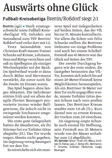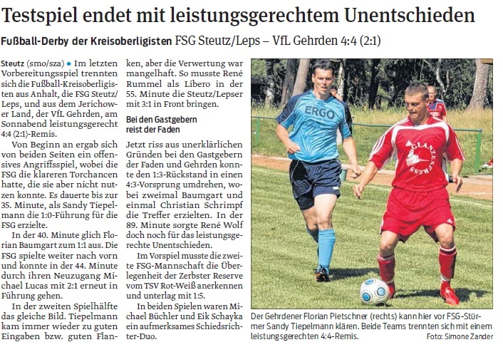 Der Tag der deutschen Einheit wurde im jerichower Land als Pokalspieltag genutzt. Der VfL Gehrden trat gegen die zweite Mannschaft von Brettin/ Roßdorf an. Trainer Andreas Schunke nahm das Spiel zum Anlass, um eine taktische Umstellungen auszuprobieren. Trotzdem konnte ein 4:2 Auswärtssieg errungen werden. Den ganzen Beitrag lesen »