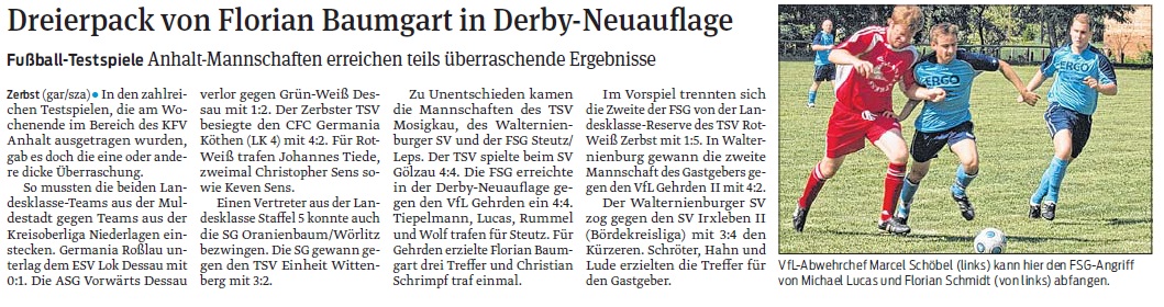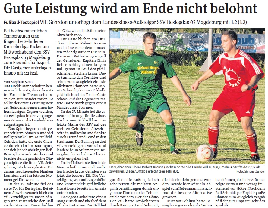 Am Samstag traten die Kicker des VfL zum Duell der Tabellennachbarn bei der TSG Grün Weiß Möser an. Leider fehlte dem VfL an diesem Tage das nötige Glück um als Sieger den Platz zu verlassen. Den ganzen Beitrag lesen »
